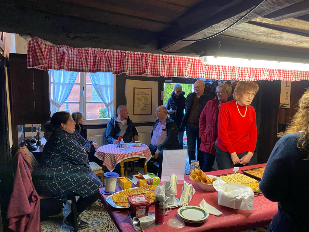 Selbst auf der Däele ließen sich einige Gäste nieder, weil sie an den Tischen auf der Tenne keinen Platz mehr fanden. An der Kuchentheke im Eingangsbereich bildete sich zwischenzeitlich eine Schlange. Gegen eine Spende wurden der von den organisierenden Frauen selbst gebackene Kuchen sowie Kaffee und Tee angeboten. In der behaglichen Atmosphäre des Hauses Uphave ließ es sich gemütlich schlemmen und klönen.